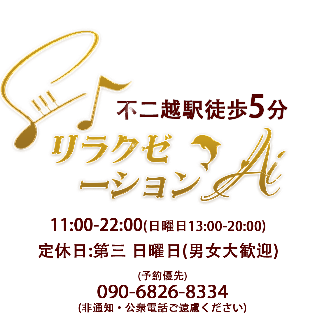 お仕事帰りやお酒を飲む前や飲んだ後に体の疲れを癒しストレスの解消をして頂ければ幸いです。自信を持ってお勧めできる施術セラピストが疲れた部分をしっかりともみほぐしていきます。特にお疲れのところがあればお気軽に申しつけて頂ければ、念入りにほぐさせて頂きます。皆様のお越しをスタッフ一同心よりお待ちしております。